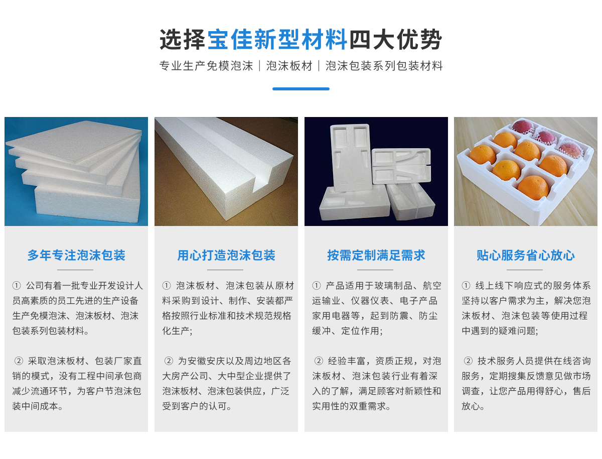 - 懷寧縣寶佳新型材料有限公司是泡沫包裝專(zhuān)業(yè)生產(chǎn)商,公司致力于產(chǎn)品內(nèi)包裝的設(shè)計(jì)和生產(chǎn)為客戶(hù)解決產(chǎn)品的防震緩沖、定位和保溫等包裝問(wèn)題本公司有著一批開(kāi)發(fā)設(shè)計(jì)人員高素質(zhì)的...